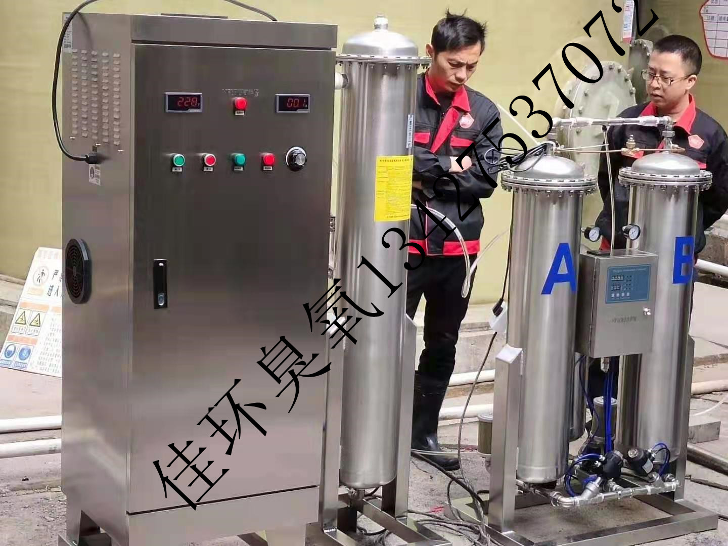 臭氧在尾端出水池處投加,這樣臭氧的脫色效果更明顯更有效9KH臭氧發生器_臭氧消毒機_臭氧水機_制氧機_廣州佳環電器【官網】